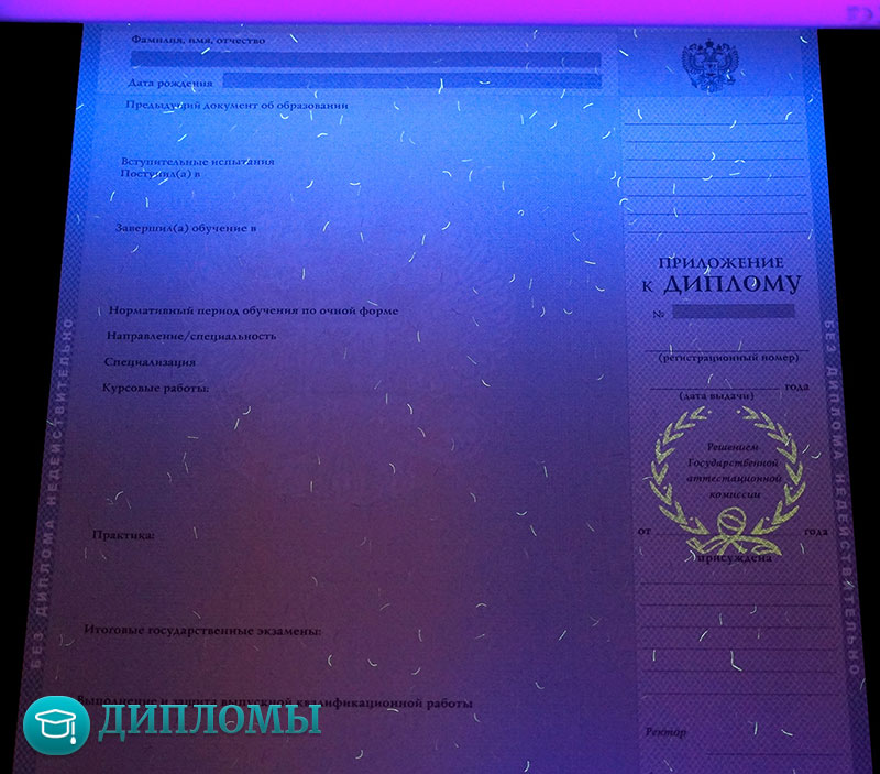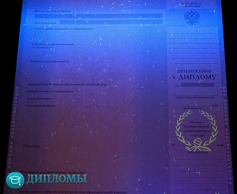 Дипломы изготавливаются на государственных бланках, имеют высокое качество и защитные элементы. Компания RusDiplomy сотрудничает с большим количеством ВУЗов в стране, поэтому не является проблемой получить бланки конкретного учебного заведения, с подписями от уполномоченных сотрудников.